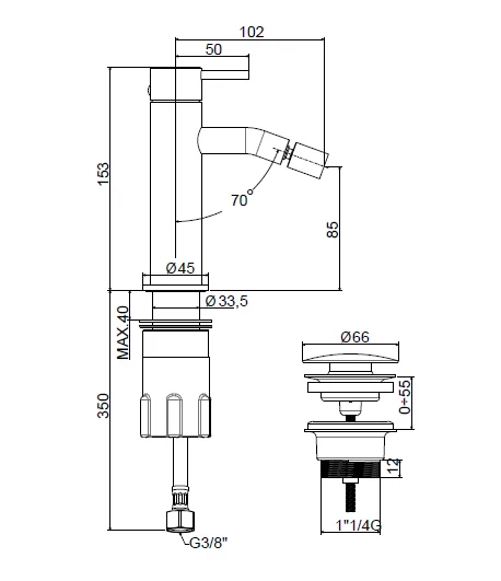 Il miscelatore viene fornito completo di scarico Clic-Clac 1”1/4G, pratico e facile da utilizzare, perfettamente coordinato al design del prodotto.