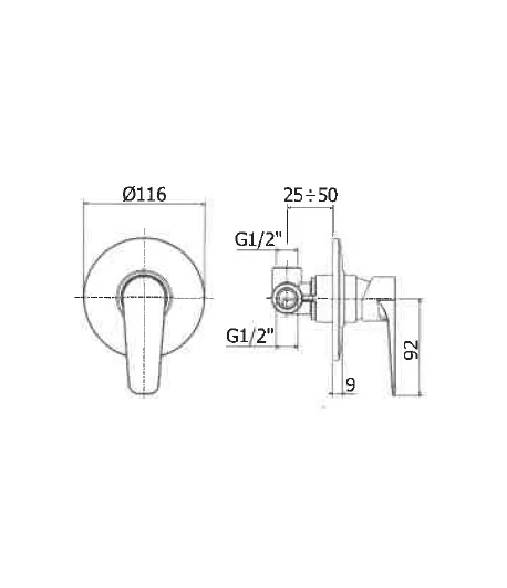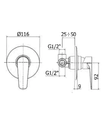 Gli attacchi da 1/2" G garantiscono una compatibilità universale con gli impianti standard, mentre la cartuccia a miscelazione assicura una regolazione dell’acqua fluida e precisa. Il modello senza deviatore è perfetto per impianti con singola uscita acqua (soffione o doccetta).