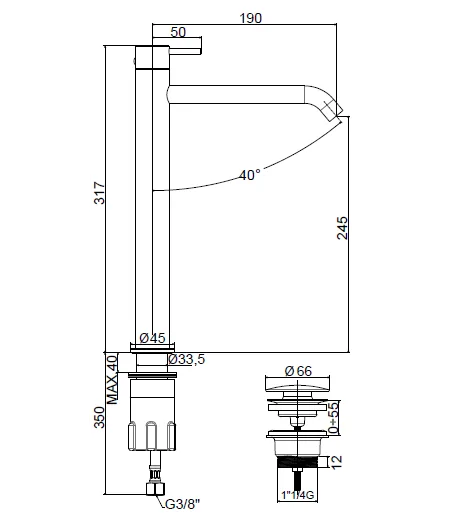 Perfetto per lavabi da appoggio, piani d’appoggio elevati e installazioni che richiedono un rubinetto a collo alto e prolungato.