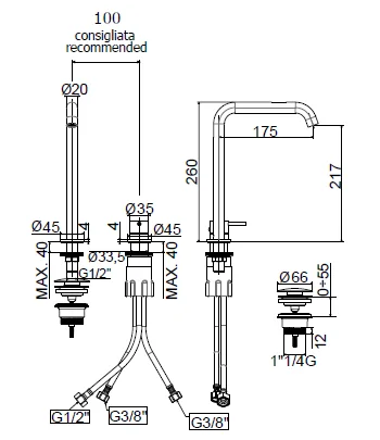 Il miscelatore è inoltre fornito completo di scarico Clic-Clac 1”1/4G, una soluzione moderna, comoda e perfettamente coordinata al design del rubinetto.