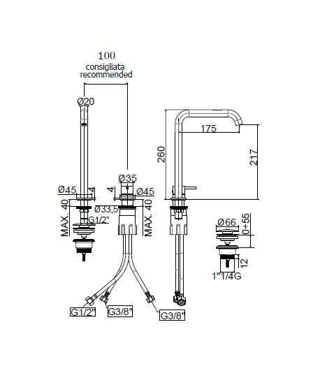 Versione senza scarico, ideale per chi preferisce soluzioni di scarico indipendenti o personalizzate.
