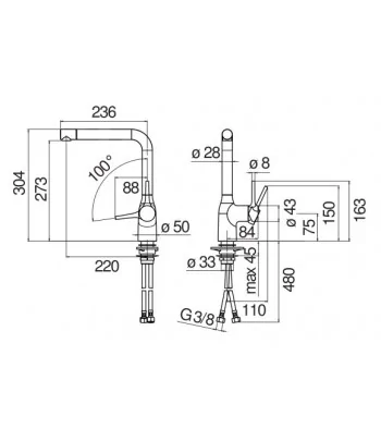 Ingresso acqua calda e acqua fredda ø 1/2”