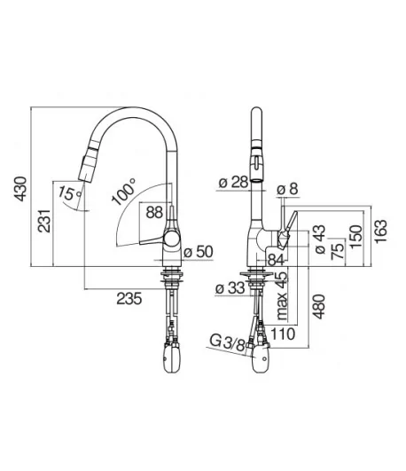 Doccetta a 2 getti estraibile