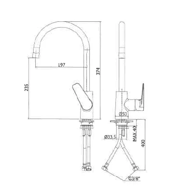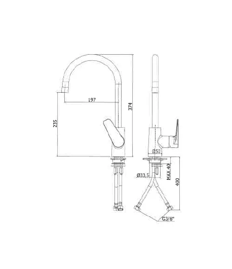 Dotato di aeratore M22x1F, assicura un getto d’acqua regolare e confortevole, riducendo gli schizzi durante l’uso. Il miscelatore è fornito con set di 2 flessibili inox 3/8" G, resistenti e semplici da installare.