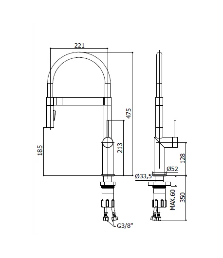 Il braccio orientabile consente la massima libertà di movimento e una gestione ottimale dello spazio del lavello, mentre la doccia estraibile con 2 getti (aerato e spray) permette di affrontare con facilità ogni attività: risciacquo, pulizia e preparazione dei cibi.