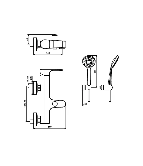 Vasca, monocomando esterno con set doccia